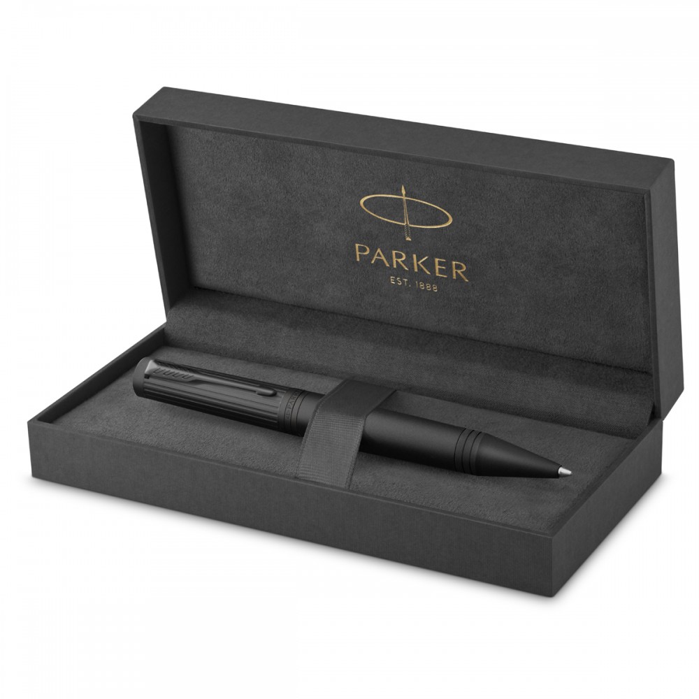 Подарочная шариковая ручка Parker из коллекции Ingenuity Black BT выполнена из латуни и покрыта чёрным матовым лаком. Цвет декоративных элементов – чёрный. Изделие отлично подойдёт в качестве подарка как для коллеги, так и для руководителя. Диаметр пишущего узла составляет 1 мм, толщина линии – 0,8 мм. Ручка упакована в премиальную подарочную коробку Parker с откидной крышкой. Укомплектована шариковым стержнем чёрного цвета.