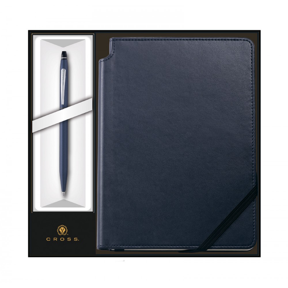 Набор: Шариковая ручка Cross Click Midnight Blue и Записная книжка Cross Journal Midnight Blue Простой, но элегантный дизайн, классические цвета и качественная отделка под кожу, а также функциональная атласная ленточка-закладка делают новые записные книжки CROSS Journals невероятно стильным и незаменимым аксессуаром в повседневном использовании. Поверхность записной книжки идеально подходит для нанесения корпоративной символики, а внутри записной книжки вас ждут листы высокого качества цвета слоновой кости в линейку, идеально подходящие для записей, заметок и даже скетчей. Листы также имеют отрывную линию, что позволит вам поделиться важной информацией, не испортив записную книжку. В записной книжке также присутствует специальное отделение для ручки, что позволит вам всегда держать вашу любимую ручку Cross под рукой (ручка не идет в комплекте). Карман на заднем форзаце не даст вам потерять заметки, сделанные на отдельных листах.Подарочные наборы записных книжек с популярными ручками Cross Classic Century или Click стаут отличным подарком на любой праздник! Размер книжки: 21х15,5х1,5 смРазмер ручки: 15х0,81 см